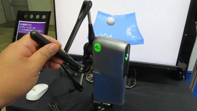 12月に都内で開かれた2025国際ロボット展(iREX2025)での同社の展示。シミュレーション上で物に触った感覚を手元にフィードバックした