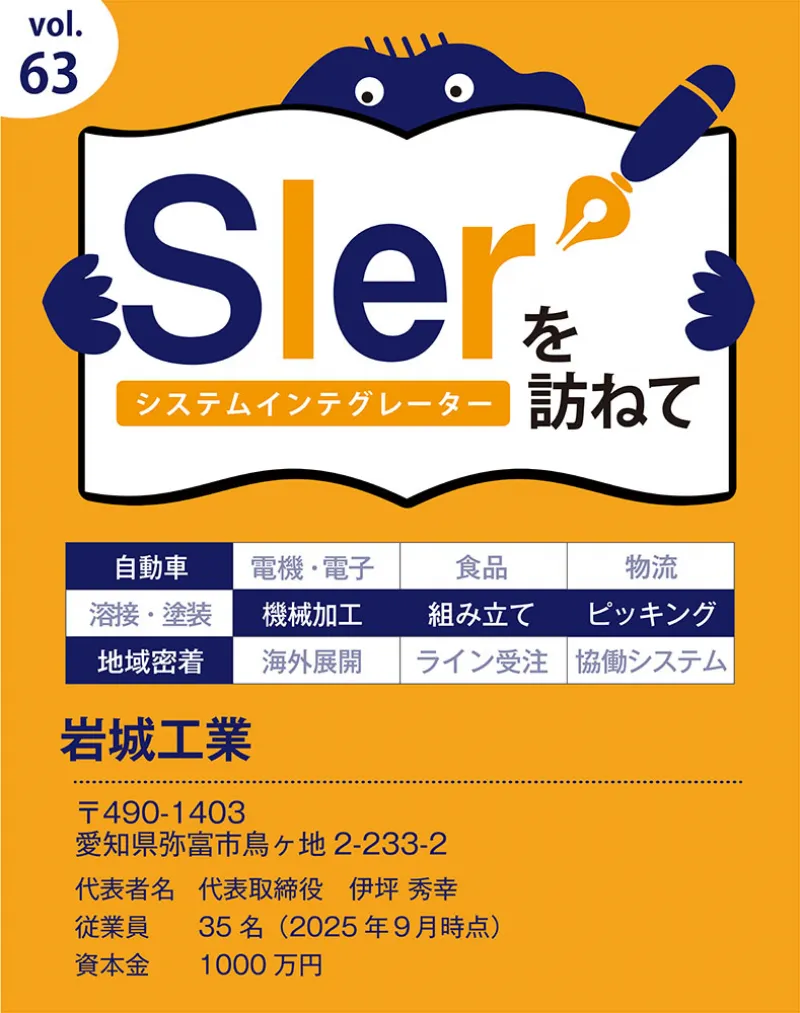 岩城工業は1980年の創業当初から自動車関連向けに油圧プレス機を製造する。オーダーメード設計を得意とし、機械設計から電気設計、部品加工、組み立てまで幅広く手掛ける。油圧プレス機の付帯設備の自動化提案を強化するため、24年にはSIer事業に新規参入。新たにFAロボット事業課を立ち上げると同時に、他のSIerで経験を積んだ人材を即戦力として2人採用し、新卒社員を含めた3人体制でSIer事業を早期に軌道に乗せる体制を整えた。