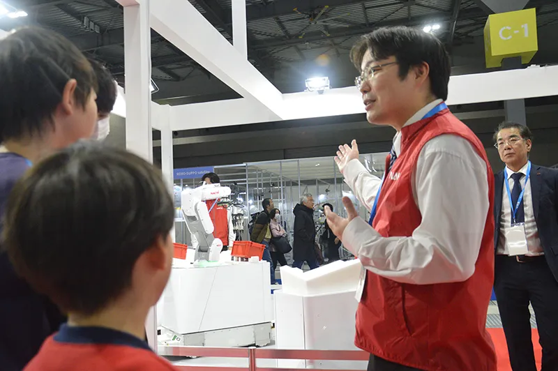 12月13日の2回目のセッション(12:30~13:30)には、おおにしりん記者、おおのこたろう記者、はしぐちももか記者、はらだけんせい記者、まつうらけいご記者、まつうらゆきね記者の6人が参加しました。2つのグループに分かれ、「World Robot Summit 2025 AICHI(ワールドロボットサミット2025アイチ)」に出展しているセイコーエプソンと不二越をそれぞれ取材しました。各記者には出展者に実際にインタビューをしてもらい、その内容を写真と共にまとめてもらいました。各記者の記事は氏名で50音順、そして必要最小限の誤字脱字の修正を除き原則的には原文のまま掲載しています。