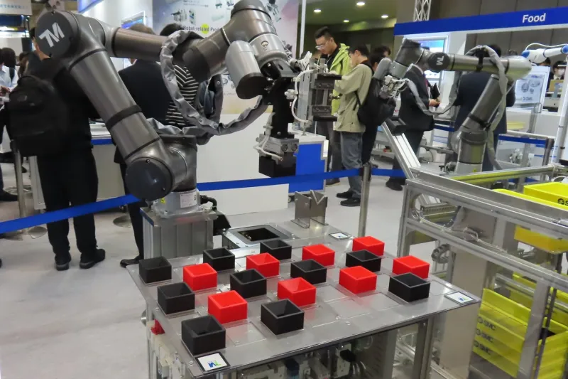 また、センサーで感知して人が近くにいる際は「協働モード」、それ以外は「高速モード」で協働ロボットを動かせるため、タクトタイムを短縮できる。本コントローラーは、同社従来比75%の体積を低減した最小クラスで、人工知能(AI)チップを搭載して自律化を実現するなど、その先進性をアピールした。
