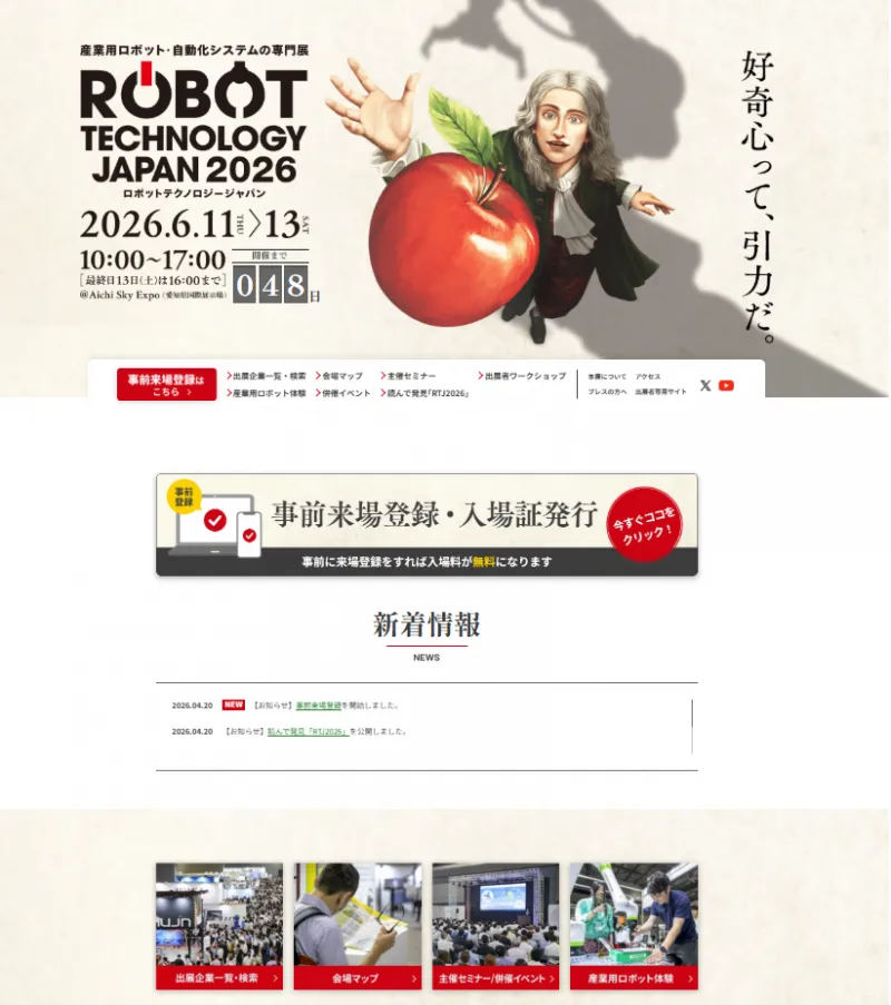 >>「ロボットテクノロジージャパン2026」の出展受け付けを開始
