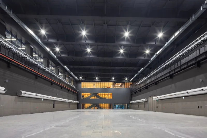 中央TCはショールーム機能を備えた施設で、第1・第2アリーナでは常設展示や企画展示などさまざまな展示を通して製品の適用例を紹介する。テストアリーナでは実機による性能検証が可能で、導入後も見据えた技術支援ができる。建物は鉄骨造の3階建てで、延べ床面積は約1万4900㎡。