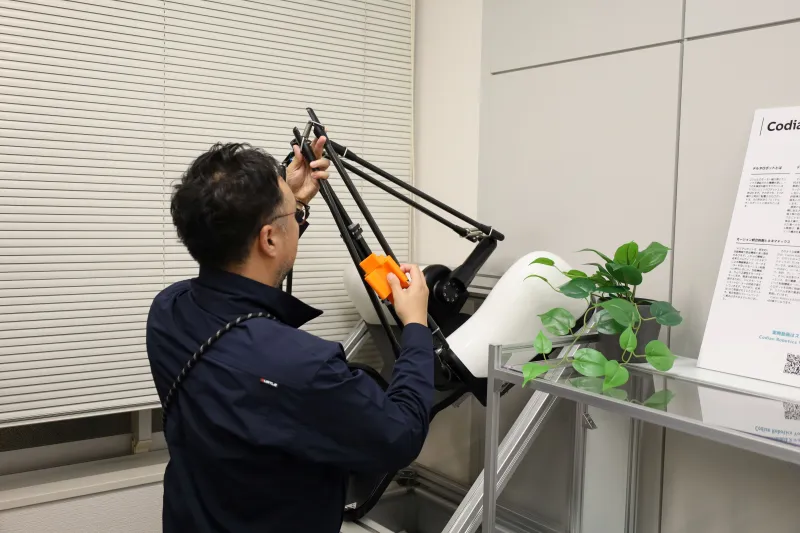 大阪ロボットセンターはコディアンロボティクス製品の実機を展示するだけでなく、メンテナンス講習の場としても活用する。同社のパラレルリンクロボットはフレームを覆うカバーが少なく構造がシンプルなため、ユーザーでも分解や部品交換が容易にできる。「ユーザーがパーツの在庫さえ保管しておけば、パーツ交換が必要になった際にメーカーやSIerを呼ぶことなくパーツを取り換えられるため、早期復旧が可能になる」と話す。