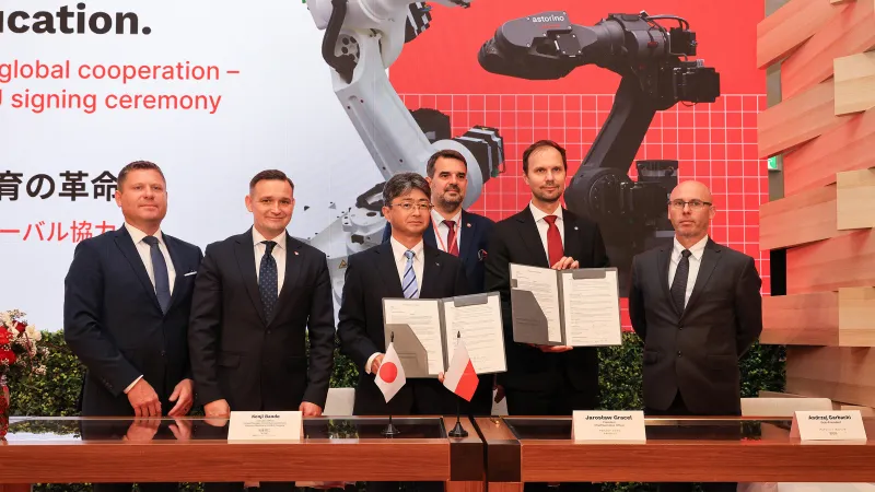 川崎重工業は9月30日、ポーランドのASTOR(アストー)が開発した教育用ロボット「astorino(アストリーノ)」の販売に向け検討する覚書をかわし、大阪市内のホテルで署名式を開いた。署名式には川崎重工の坂東賢二精密機械・ロボットカンパニーロボットディビジョン長とアストーのヤロスワフ・グラセル社長、アンドレッツィ・ガルバッキ副社長が参加し、覚書に署名した。今後、販売の具体的な条件や販路などについて検討を進める。