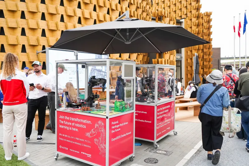 アストリーノは教育用途として安全を確保し周囲の機械などを壊さないよう、可搬質量や動作速度は抑えられ、協働ロボットではないもののドイツのTUV(テュフ)の安全認証を得ており、柵は不要となっている。性能は限定的だが6軸垂直多関節ロボットに欠かせない構造を一通り備え、プログラミング言語は川崎重工のロボットと共通。また、部品が破損しても3Dプリンターで部品を出力できる。学生や初心者が失敗や実験を通して実践的なスキルを学べる。坂東ディビジョン長は「ロボット教育の面でポーランドは非常に先進的。日本でアストリーノを販売し、ロボット教育に役立てたい」と話した。
