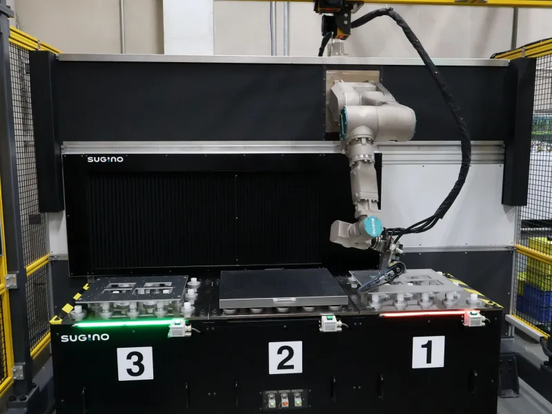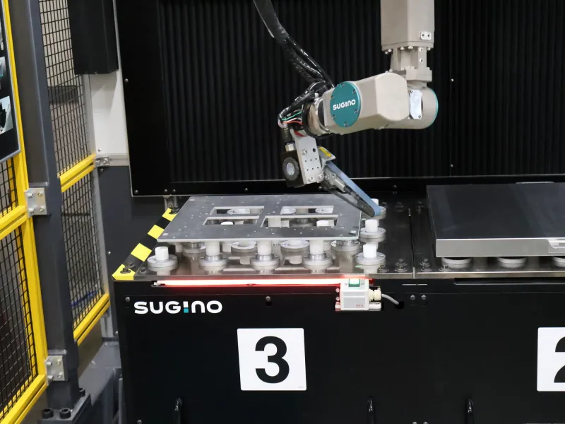 スギノマシンはマキノでの導入を皮切りに、今後も板金加工向けの提案を強める方針だ。カエリ取りロボットシステムの年間販売目標を10台、溶接ロボットシステムも含めた3年後までの販売目標を50台と定め、板金加工のさらなる自動化を支援する。