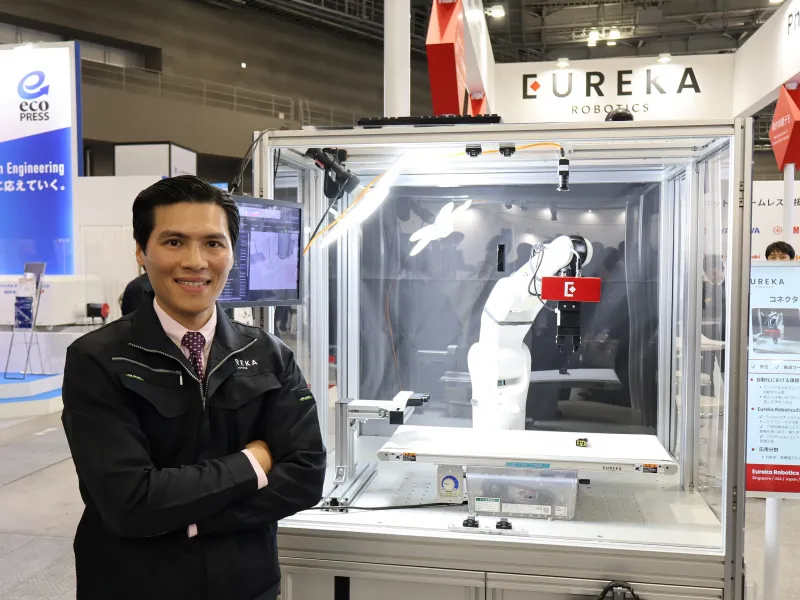 ロボットコントローラーやビジョンセンサーを開発する、シンガポールのEureka Robotics(エウレカロボティックス、日本法人=東京都江東区、ファム・クアン・クオン社長)は「現場を動かすフィジカルAI」をテーマに、前回展から2倍の規模のブースで出展した。